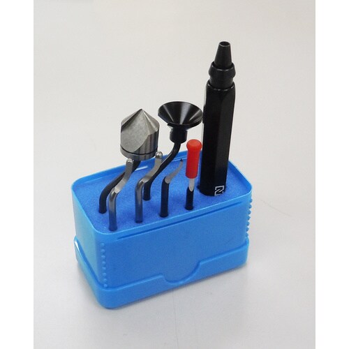 7種の替刃とハンドル、PVCケースに収納。多種のバリ取り・面取りに対応。 |