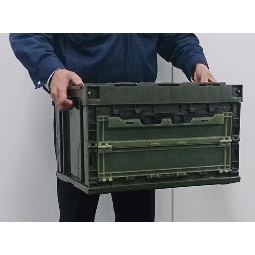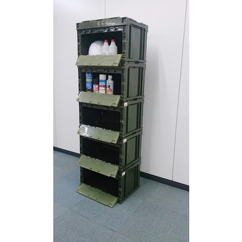 積み重ね時に物をとりやすい側面窓付(長辺一ヶ所)。窓はOD色半透明で目立ちにくく内容物を確認可能 |