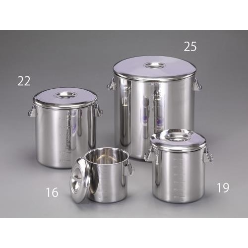 ステンレス製ポットは取手付き、目盛り付きで21L、大量の液体対応。 |