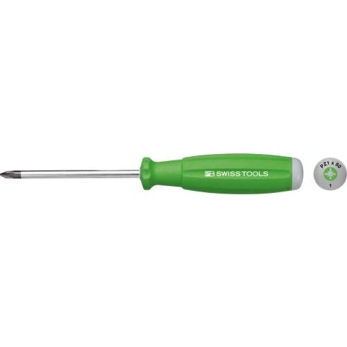 黄緑色でサイズが分かりやすい。壁掛けホルダー付きのポジドライブ用工具。 |