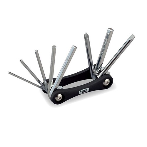 TONE製の8機能マルチツール。必要な機能を厳選した折込式で、作業場所を選ばず持ち運びも容易です。 |