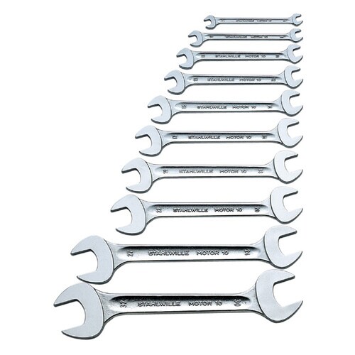 I型ボディが軽量と剛性両立、クロム合金鋼の8本組スパナ。 |