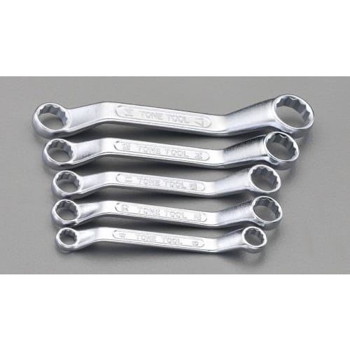 ショートサイズと曲がり柄で狭所作業をサポート。TONE製の5本組めがねレンチセットです。 |