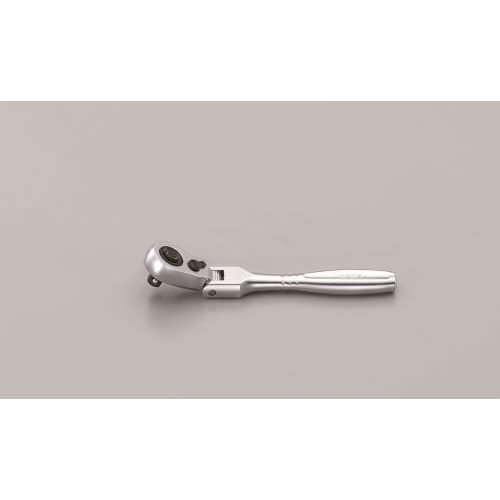 TONE製の首振型ラチェットハンドル。全長90mm、送り角5度で狭所作業に。 |