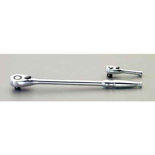 全長80mmと短く狭い場所での作業に便利なラチェットハンドル。3/8差込角でロック式、左右切替も可能なショートタイプです。 |