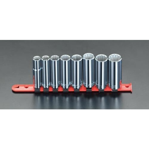 12ポイント仕様、インチサイズのディープソケット。ホルダー付きで、8個組の便利なセット。 |