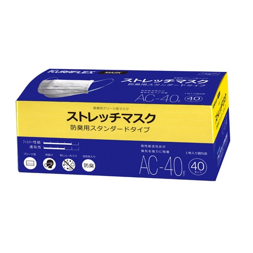 粉塵と臭いを快適ガード。高捕集フィルターと活性炭の4層構造で、息がしやすい耳かけ式。毎日使える40枚。 |