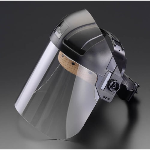 上向き作業のホコリから顔を保護。クリアな視界を保つ曇り止め付きフェイスプロテクターは、メガネ併用OK。上下可動で作業を妨げません。 |