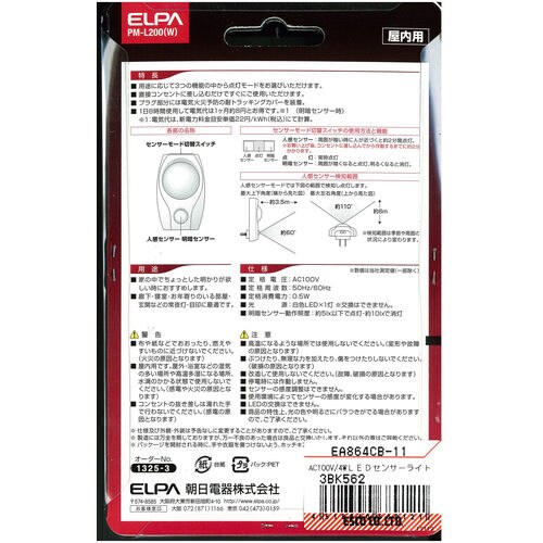 3つの点灯モードで、必要な場所を賢く照らす屋内用LEDセンサーライト。人感・明暗・常時点灯を選べ、省エネにも貢献。 |