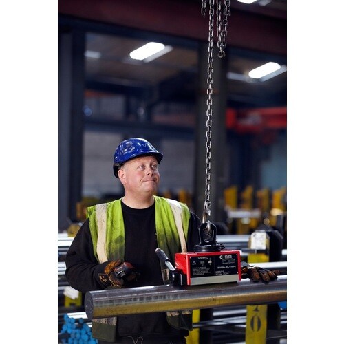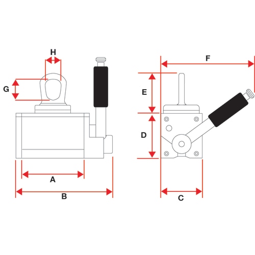 ハンドル位置をロックし、荷重の開放を防ぐセーフティボタン付 |