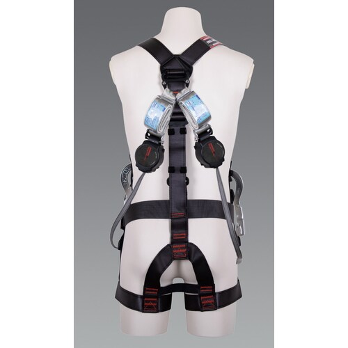 藤井電工の飛燕ハーネスで高所作業を安全に。自動巻取式ツインランヤードとロック機構で墜落リスクを最小限に抑え、あなたの作業を確実にサポートします。 |