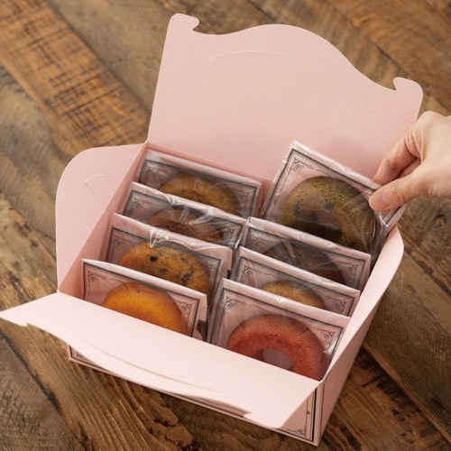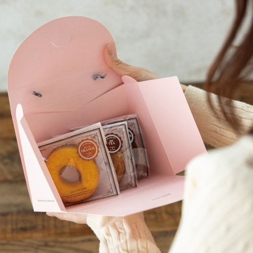 高級感のあるピンクのデザインの冷凍対応ガス袋(脱酸素剤対応袋)です。落ち着いた優しい色合いがお菓子をよりおいしく見せてくれます。焼きドーナツやカットパウンドケーキなど大きな焼き菓子にぴったりのサイズ。 |