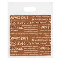 人気のカフェオレシリーズのフロストバッグです。半透明の素材にフランス語が書かれている落ち着いたデザインで幅広い業種の方にお使いいただいています。