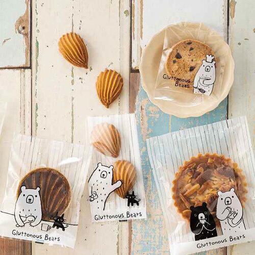 クマのゆるいイラストが可愛いグラットンベアシリーズの個包装ガス袋(脱酸素剤対応袋)です。クマの兄弟「ブベベ」と「ホベベ」のイラストがキュート。