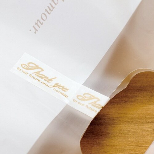 白地に金印刷がエレガントな「ありがとう」のキモチを伝えるサンキューセロハンテープです。 |