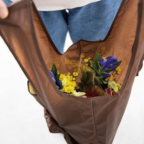 ブーケ型になった専用のエコバッグです。定番カラーで使いやすく、持ちやすい!花丈に合わせて長さを調節できる便利さもポイントです。店頭での販売や常連の方へのノベルティとしても。 |