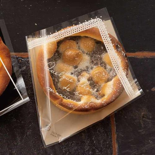 やさしいピンク色が女性に人気のシュークリーム袋です。前面は透明、背面がピンク色になっています。 |