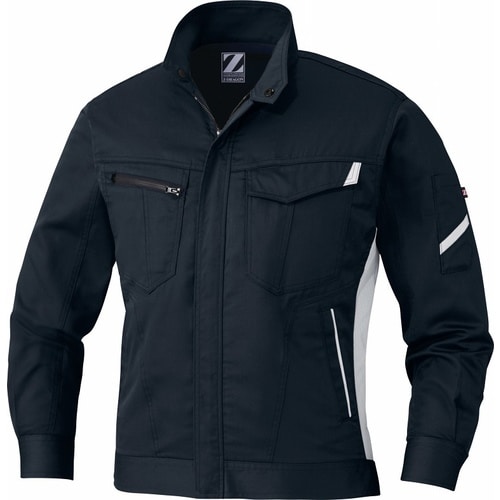 丈夫でソフトな着心地のポリエステル、綿混紡素材の長袖ジャンパー。製品制電(JIS T8118)適合商品。