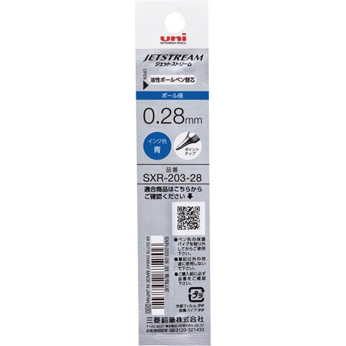 ジェットストリーム エッジ 0.28 替芯 青 インク色青 87.7mm 1本 SXR20328.33 ボールペン用替芯(三菱鉛筆)