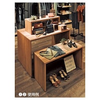 すっきりディスプレイできるシンプルな木製テーブル。コーディネート提案が映えるデザインです。26mmの薄めの板厚でスッキリとしたデザイン。 |