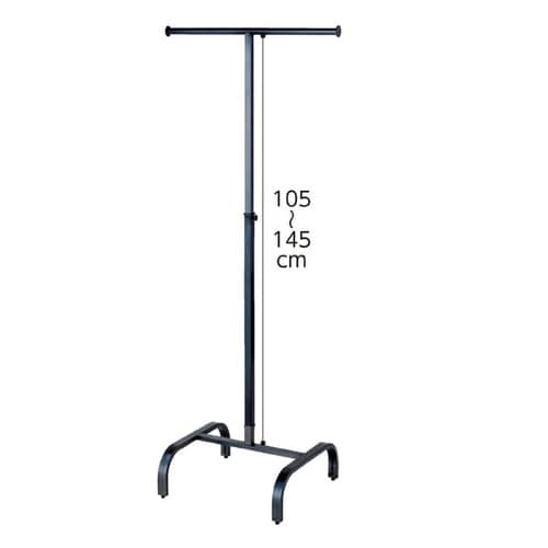 丸パイプと角パイプの異型ディテールを組み合わせたハンガーラック。重厚な黒革風塗装で、鉄の武骨さを押し出した仕上げです。 |