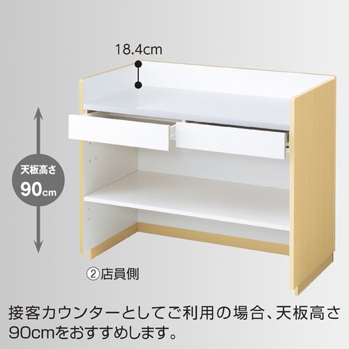 天板の高さを3段階に変更できるレジカウンター台。天板は高さ90cm・80cm・70cmの3段階に調節可能。内側の足元は作業性を考慮し、靴が当たらない仕様になっています。 |