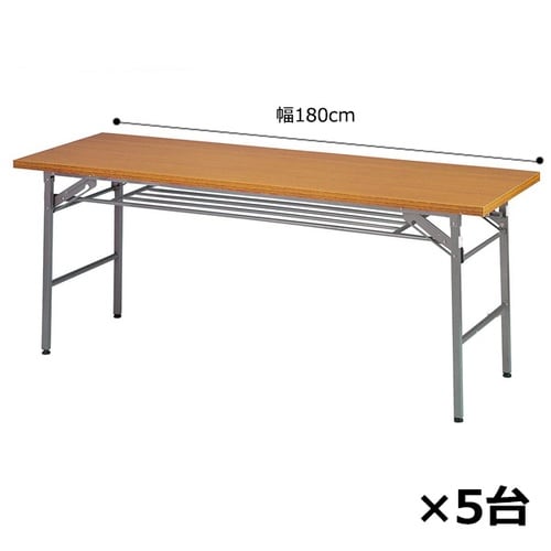 折りたたみテーブル W180cm 棚付き チーク D45cm 7190−129 折り畳み式会議用テーブル 1セット(5台)