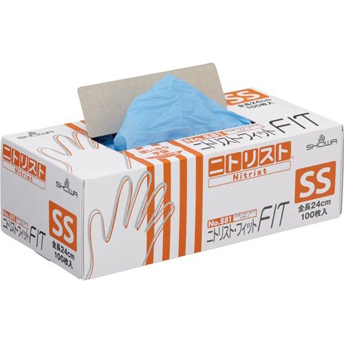 ニトリスト・フィット ブルー SS 20箱 全長:240mm パウダーフリー・左右兼用 1ケース(100枚入×20箱) NO881−SS×20 使い捨て手袋(ニトリル)
