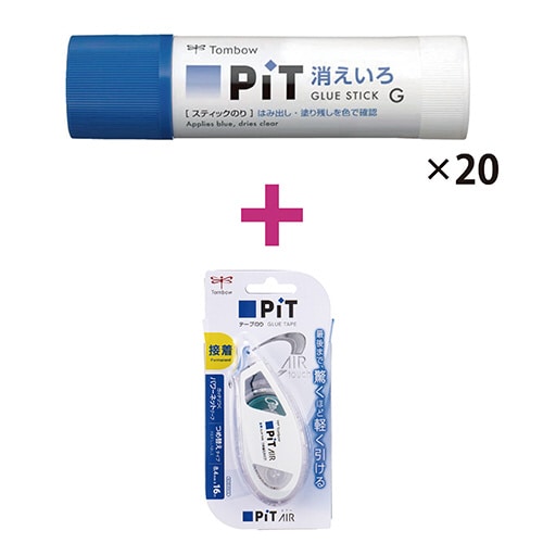 消えいろピットG40g +ピットエアー1個 スティックのり 1箱(20本入)