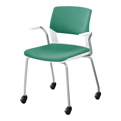 会議イス160 キャスター脚 レザー緑肘付 硬床用 4本脚チェア 背ミディアムミント/座ミディアムミント 幅585×奥行500×高さ780mm 1脚 キャスター付き CK−161CRVZ24−VN