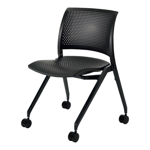 スプライン 黒脚キャスター 座樹脂 黒 硬床用 4本脚チェア 背ブラック座ブラック 幅595×奥行565×高さ810mm 1脚 キャスター付き K11−B200U−BK1