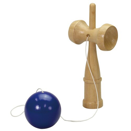 青色の玉のスタンダードなタイプのけん玉です。着色済なので、そのまますぐに遊べます。 |
