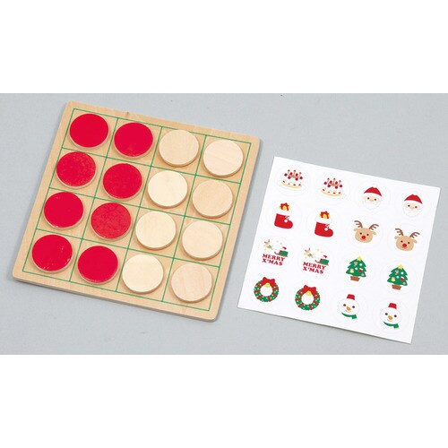 リバーシと絵合わせの2種類の遊びができるの木製おもちゃです。サンタクロースやトナカイなどかわいいクリスマスデザインです。 |