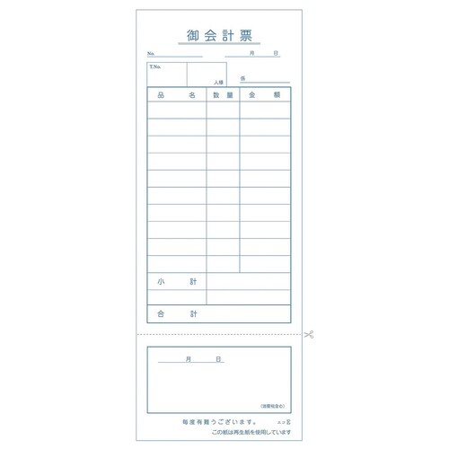 溝端紙工印刷 会計伝票 単式E 04790301 レジ周り用品 1包(100枚×10冊入) 3707-4395