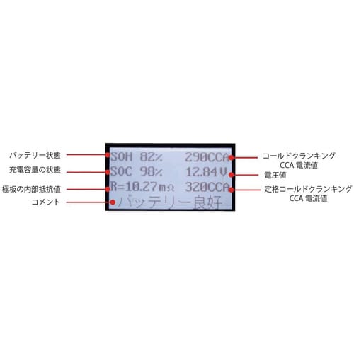 | 注意事項 | ※SOH(State Of Health)とは、測定バッテリーの健康状態のことで、数値(%) で表されます。 |