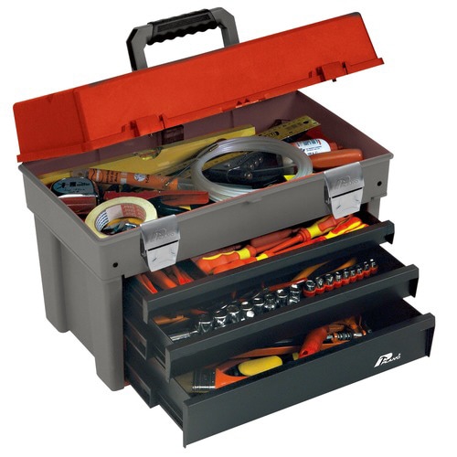 3段の引き出しがついた、プロフェッショナル用のツールケースです。 |