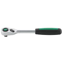 異なる素材を組み合わせたツートンカラーのグリップ付き1/2”SQラチェットハンドル。 |