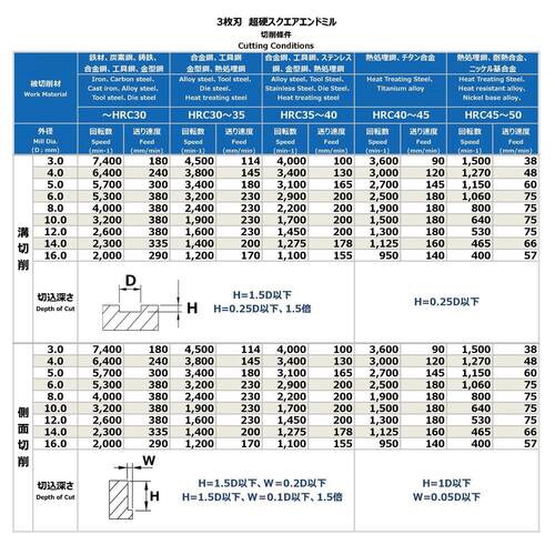 HRC50以下、炭素鋼・工具鋼・鋳鉄・焼入鋼