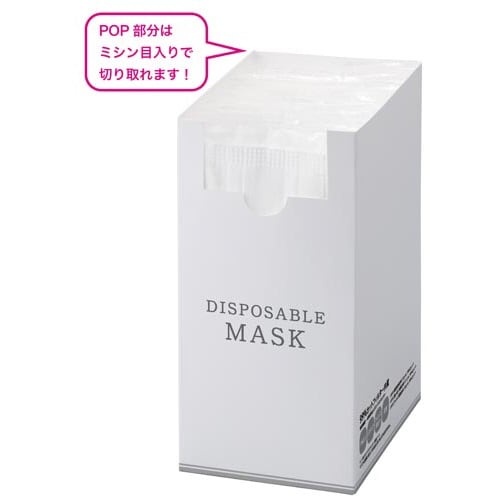 全国マスク工業会マーク付き。着用を促すPOPを簡単に作れる個包装タイプの3層式マスク!タテ型のパッケージ箱で、1枚ずつ取り出しやすい! |