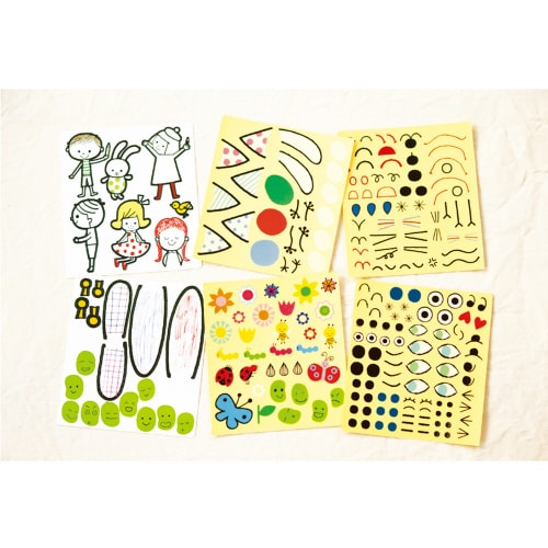 シールをペタペタはると、おやおや?動物や植物の顔ができちゃた!とってもカラフルなページにはどうぶつやしょくぶつの顔のカタチが描かれています。 |