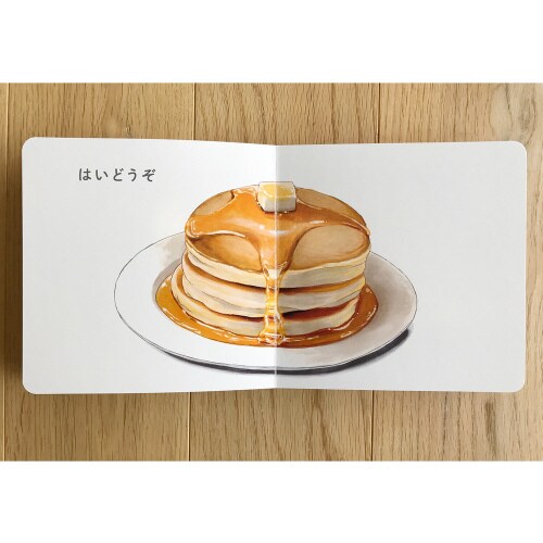「じゅーパカッ」「ぴちぴちぱちぱちパカッ」リズミカルな言葉に合わせ、しかけ扉をめくると、完成したいろいろな料理が現れるしかけ絵本。繰り返しのリズムで書かれた文章で、読み聞かせにもぴったり。 |
