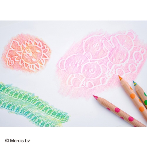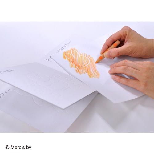 各ページのディック・ブルーナのグラフィックが凸凹になっているボードブックです。色を塗ると絵が浮き出てきます。紙を重ねて塗ることで何度でも楽しめます。 |
