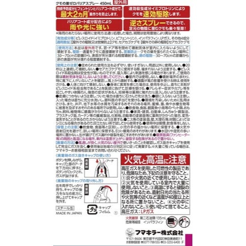 クモの巣ゼロバリアスプレー 450ml 横66mm×縦66mm×高さ238mm 1セット(5本入) 447750×5 殺虫剤(クモ)