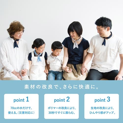 ひんやりスカーフでいつでもクールダウン。水だけで涼感を得られる安心・快適なエコ商品で繰り返し使えるから、地球に優しく経済的! |