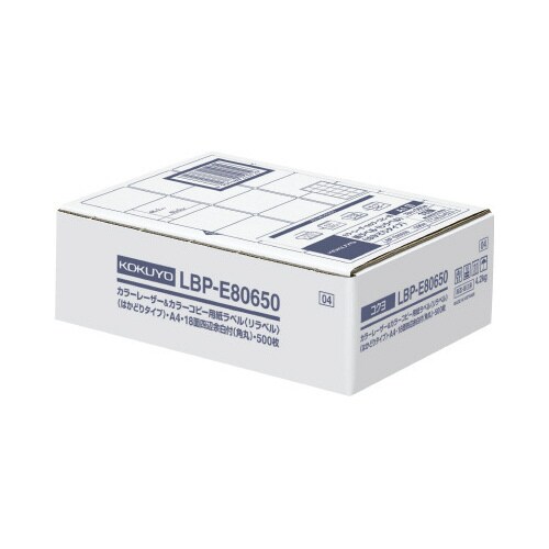 カラーLBP&コピー用紙ラベル18面角丸 A4 はかどりタイプ 1箱(500枚入) LBP−E80650 ラベルシール ラベル用紙(スタンダードタイプ)