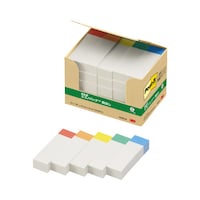 たっぷり入ってお得な通常粘着エコノパック製品。オフィスでの買い置きにおすすめ。見出しに便利なサイズ。資源の有効利用を考え、古紙パルプ配合率100%の再生紙を使用しています。 |