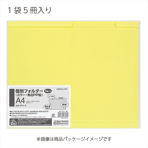 個別フォルダー(PP製・パック)黄 A4ヨコ A4−IFH−Y 1パック(5枚入)