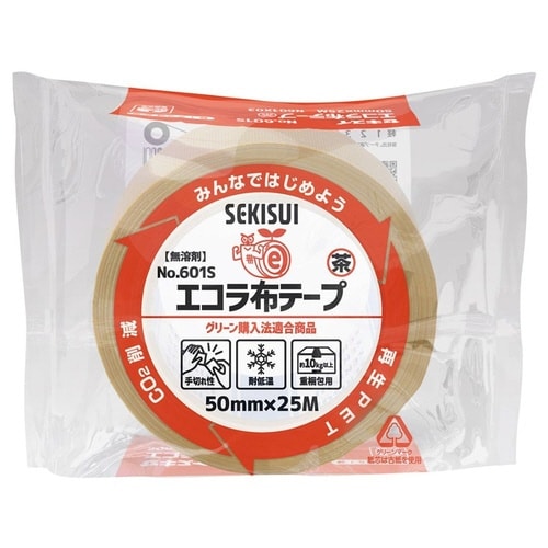 再生PET繊維を横糸に、スフを縦糸に使用したグリーン購入法適合商品の布テープです。(再生PET繊維40%以上)紙芯にも再生紙を使用し、環境に配慮しました。性能は布テープと同様です。 |