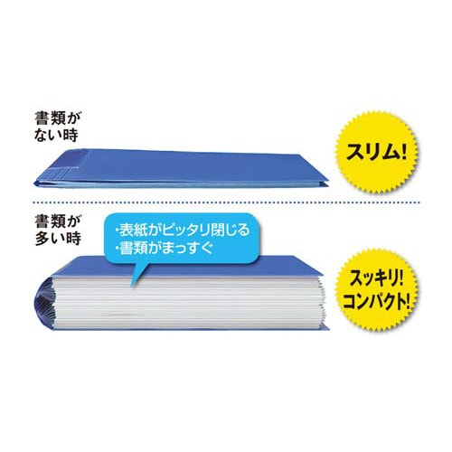 背幅が変わるコクヨのクリヤーブック!中身が見える透明表紙、中紙なしタイプになります。背とポケットが溶着されている固定式です。 |