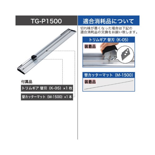 発泡スチレンボードカッター 裁断幅1500mm 幅250×奥行1675×高さ120mm 1台 TG−P1500